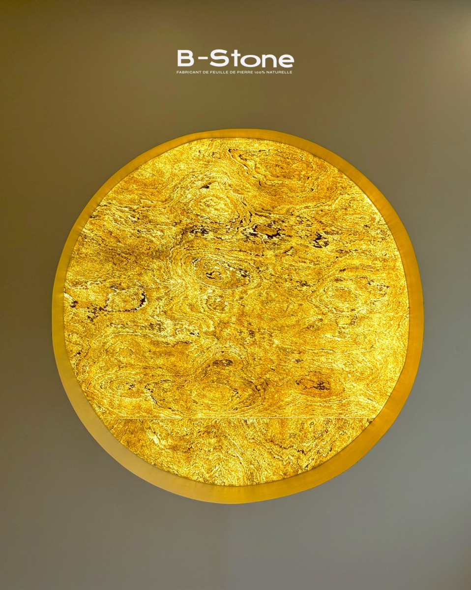 Bona 100 Translucide sublime la noblesse de la pierre naturelle en y ajoutant une dimension lumineuse inédite. Elle conserve les tons beiges et dorés de la Bona 100 Classique tout en révélant une nouvelle dimension grâce à sa translucidité. Lorsqu’elle est rétroéclairée, chaque veinage et texture prend vie, offrant une atmosphère douce, chaleureuse et authentique.