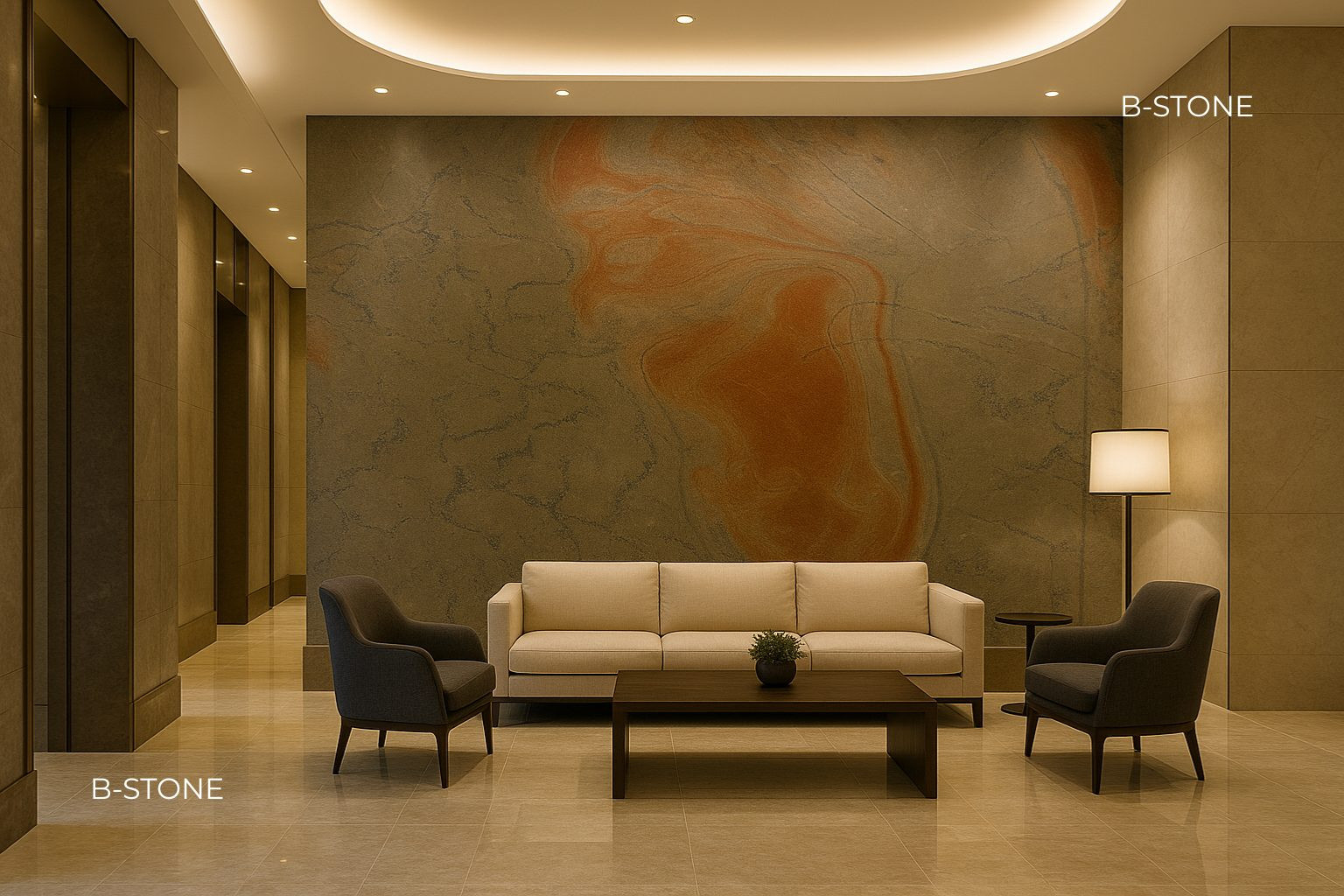 Combinant la robustesse de la fibre de verre à la stabilité de la résine, notre feuille de pierre B-Stone offre une résistance exceptionnelle aux intempéries et à l’humidité. Parfaite pour des applications aussi bien intérieures qu’extérieures, elle allie innovation et naturalité, s’adaptant à tous types de projets, qu’ils soient en milieu sec ou humide.
