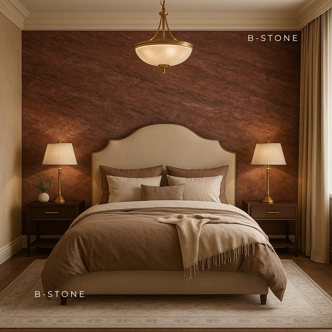 Plongez dans l’élégance de la feuille de pierre Ourika 201, un mica aux teintes rouge profond. Dotée de reliefs naturels uniques incrustés, cette feuille de pierre capte l’essence des « mouvements » naturels, offrant une finition spectaculaire qui évoque la beauté pure de la nature.